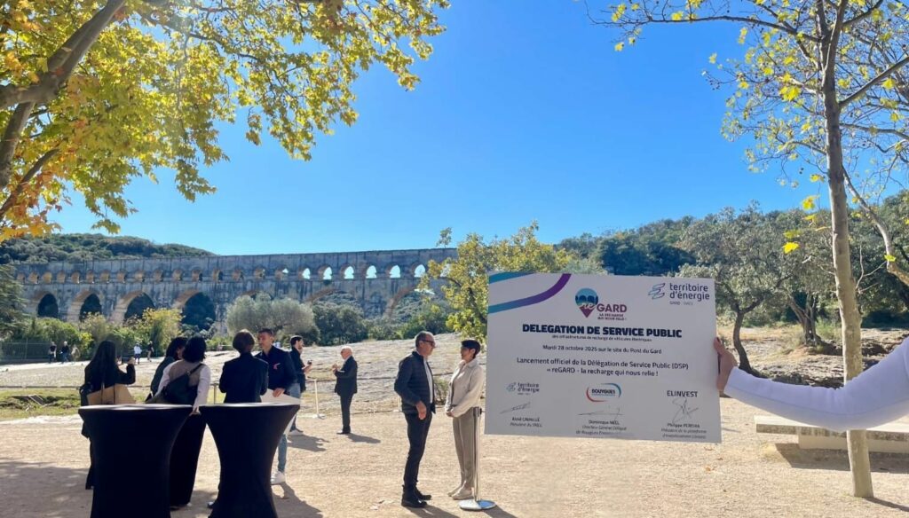 Ce mardi 28 octobre, c’est en présence d’Aime Cavaille, Président du Territoire d’énergie du Gard, de Dominique NEEL, Directeur général délégué de Bouygues Energies & Services, entité d’Equans France, de Patrick Malavieille, Président de l’EPCC Pont du Gard et de Guillaume Petitjean, Responsable d’investissement Numérique et Mobilité Banque des Territoires, qu’a eu lieu, au Site du Pont du Gard, le lancement officiel de la Délégation de Service Public « reGARD, la recharge qui nous relie ! », et l’inauguration des huit bornes de ce site classé au patrimoine mondial de l’UNESCO. 🏛️